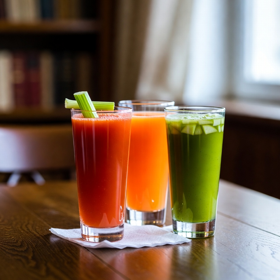 Beginne den Morgen mit einem Glas frisch gepresstem Saft aus Tomaten, Möhren und Äpfeln. Diese nährstoffreiche Kombination liefert dir jede Menge Vitamine, Antioxidantien und Flüssigkeit – ideal für einen gesunden Lebensstil und einen energiegeladenen Start in den Tag.
