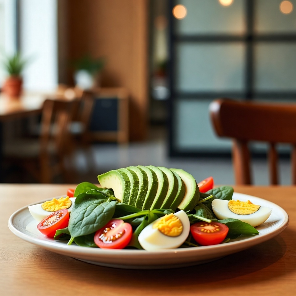 Probiere dieses Rezept aus und genieße die harmonische Kombination aus Avocado, Spinat und Ei in einem gesunden, sättigenden Salat.