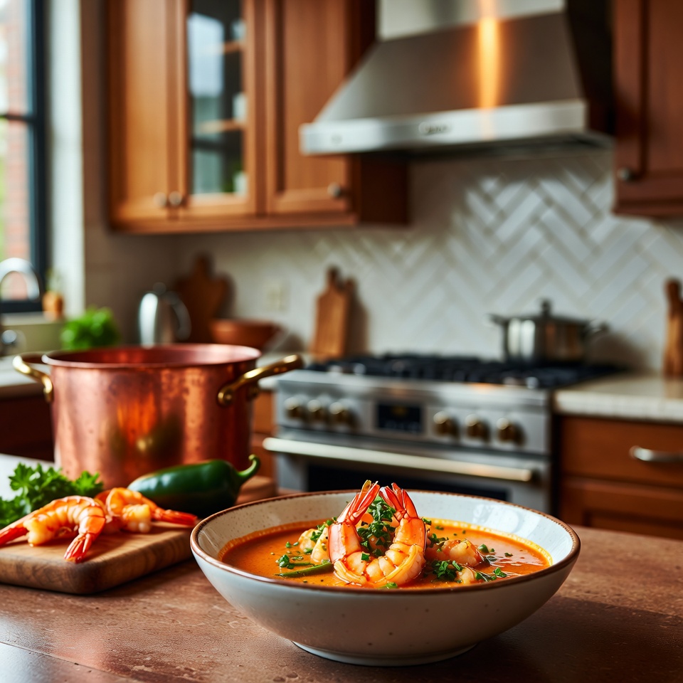 Wärmend, aromatisch und mit einer angenehmen Schärfe: Diese cremige, pikante Jalapeño-Garnelensuppe ist ein Highlight für alle, die Meeresfrüchte lieben. Die Kombination aus zarten Garnelen, einem samtigen Sahnefond und der feurigen Note der Jalapeños macht sie zu einem perfekten Wohlfühlgericht – ideal für kühle Abende oder wenn Sie Lust auf etwas besonders Herzhaftes haben.