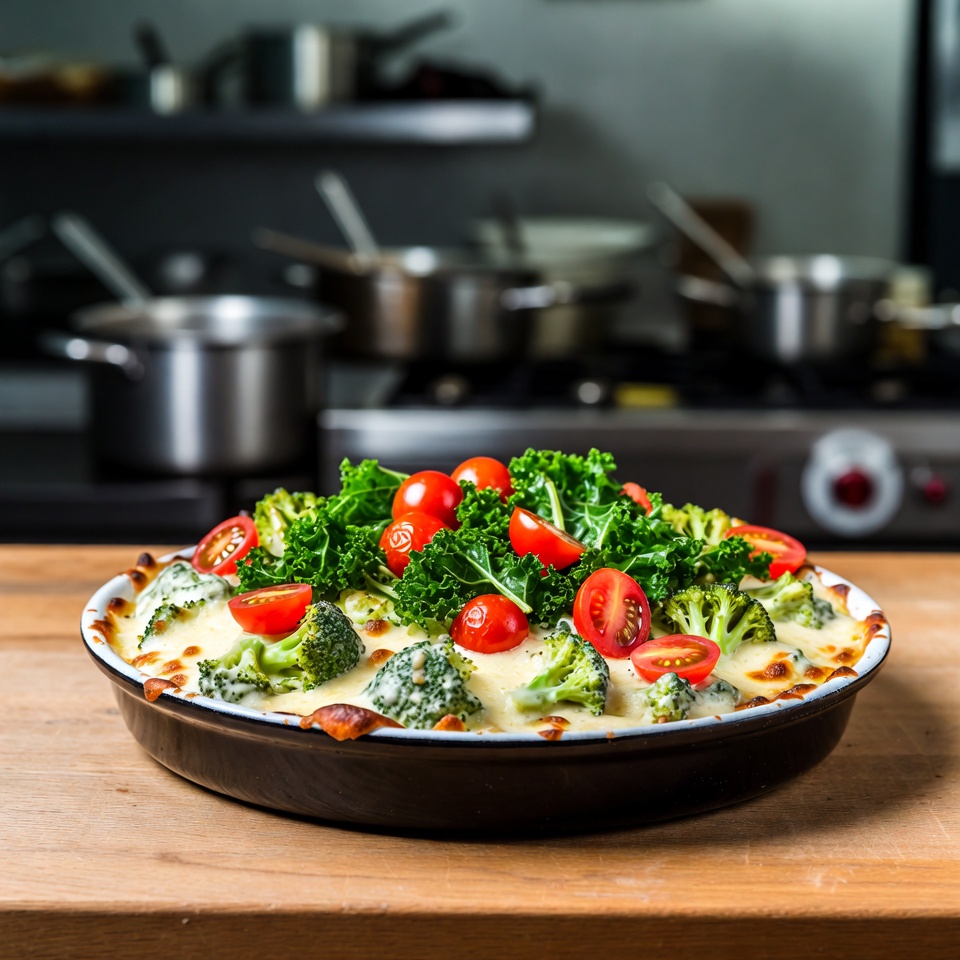 Cremiger Brokkoli-Auflauf mit Tomaten und Grünkohl
