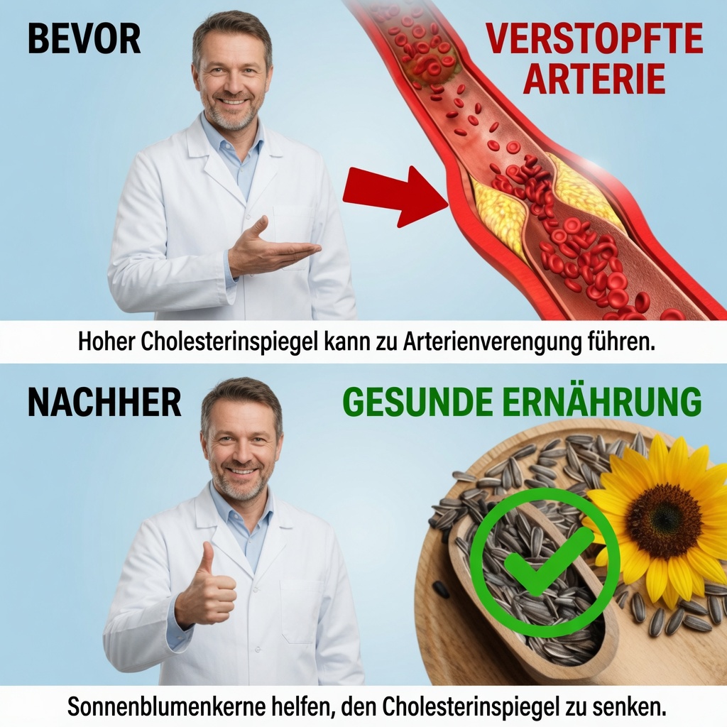 Täglich Sonnenblumenkerne zu essen kann deinen Körper auf überraschend einfache Weise unterstützen. Sie wirken wie ein natürlicher „innerer Schutzschild“ und können die Durchblutung von Herz und Gefäßen fördern. Der Grund: Sonnenblumenkerne liefern viel Vitamin E sowie Phytosterole – zwei Stoffe, die dabei helfen können, Ablagerungen durch Cholesterin weniger „zäh“ und „klebrig“ wirken zu lassen. So lässt sich die Herz-Kreislauf-Gesundheit mit einem günstigen, alltagstauglichen Lebensmittel unterstützen.