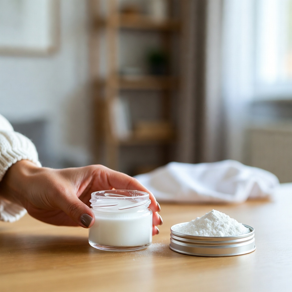 Die Kombination aus Vaseline und Maisstärke gilt im Allgemeinen als relativ mild. Dennoch sollten Menschen mit sehr empfindlicher, zu Akne neigender oder fettiger Haut vorsichtig sein, da der okklusive Film der Vaseline Unreinheiten oder Irritationen begünstigen kann. -