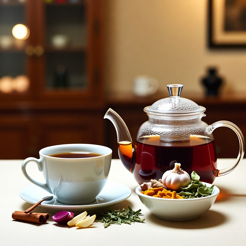 Diese besondere Teemischung aus Knoblauch, Kurkuma, Zwiebel, Ingwer, Zimt und Guavenblättern vereint wertvolle Pflanzenstoffe in einer einzigen Tasse. Der Tee ist für alle interessant, die ihren Körper auf natürliche Weise unterstützen, die Verdauung fördern und das Immunsystem stärken möchten.