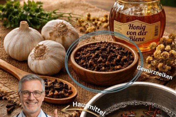 Ein klassisches Hausmittel nutzt die antioxidativen Eigenschaften von Knoblauch und Zwiebel, die traditionell zur Unterstützung der allgemeinen Gesundheit eingesetzt werden.