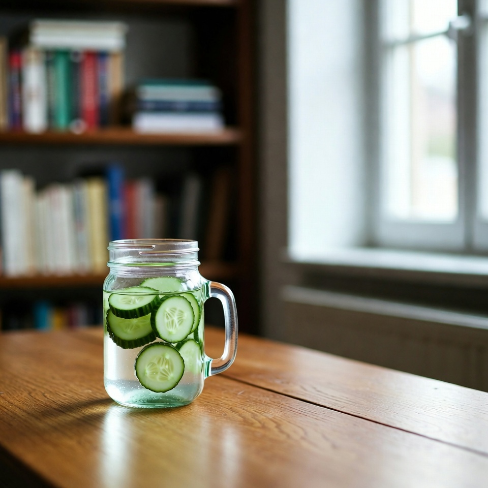 Integriere einen Esslöffel dieses Gurken-Drinks in deine Morgenroutine, um den Tag mit Flüssigkeit und augenrelevanten Nährstoffen zu beginnen.