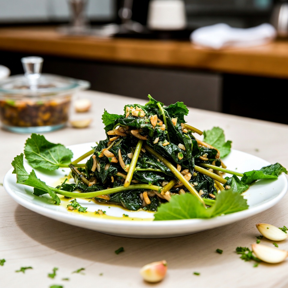 Gebratene Wilde Malve mit Knoblauch und Olivenöl