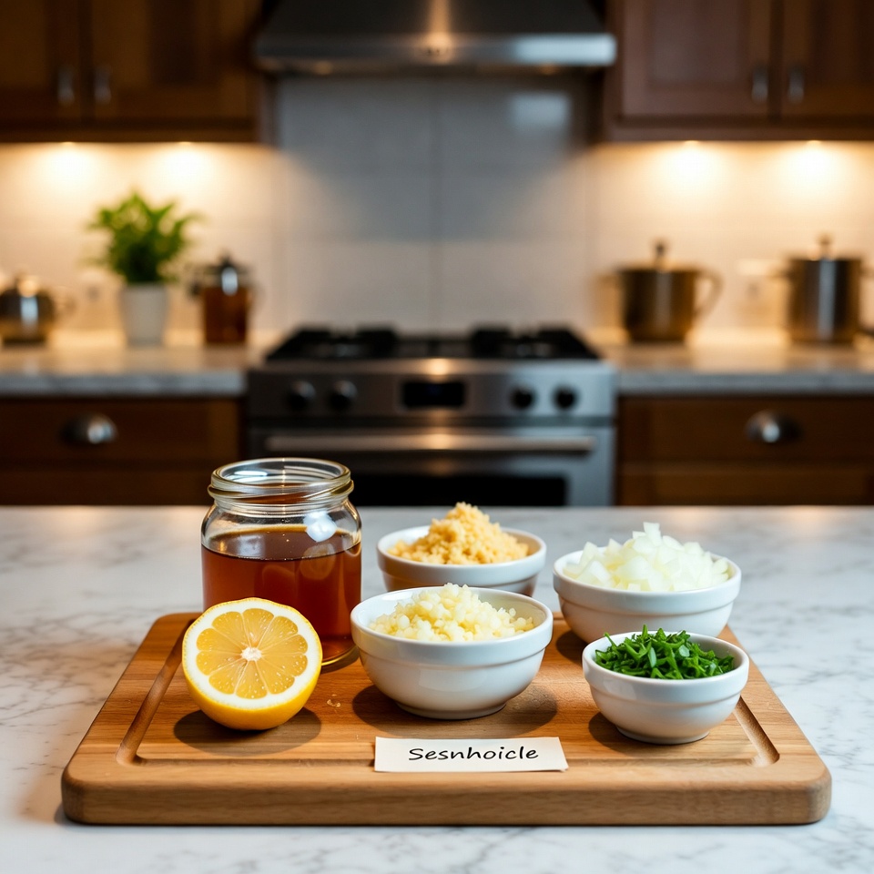 Honig, Zitronensaft, Zwiebel, Knoblauch und Ingwer: