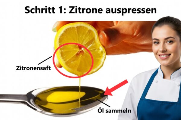 • 1–2 Knoblauchzehen zerdrücken, 10 Minuten warten, dann mit Wasser einnehmen.