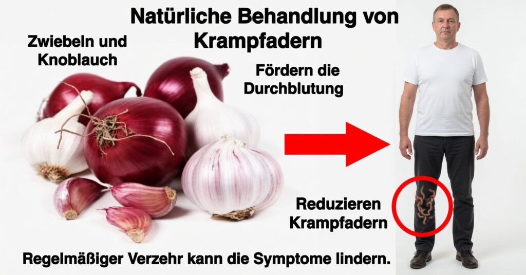 Natürliches Krampfadern-Hausmittel mit roter Zwiebel und Knoblauch