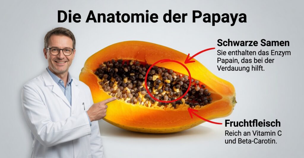 Vier Papayakerne pro Tag gründlich zu kauen ist ein unkomplizierter Alltagstrick, der in verschiedenen Kulturen traditionell zur Unterstützung der Verdauung und der Darmfunktion eingesetzt wurde. Damit sich mögliche Vorteile zeigen und Unverträglichkeiten vermieden werden, sind vor allem Maß, Regelmäßigkeit und ein bewusster Umgang wichtig. In diesem Beitrag erfährst du, was Papayakerne auszeichnet, welche Effekte ihnen zugeschrieben werden, wie du sie richtig verwendest und welche Vorsichtsmaßnahmen gelten.
