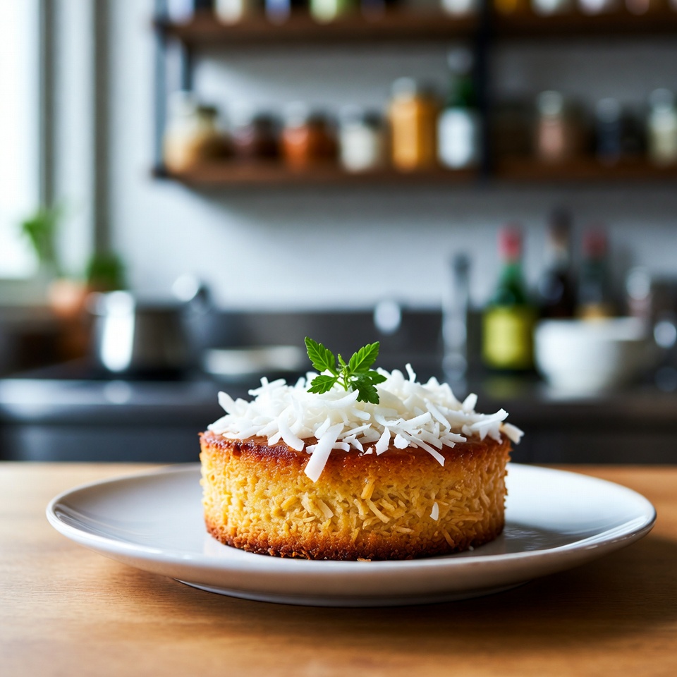 Vor dem Servieren die Oberfläche mit zusätzlich geraspelter Kokosnuss bestreuen.