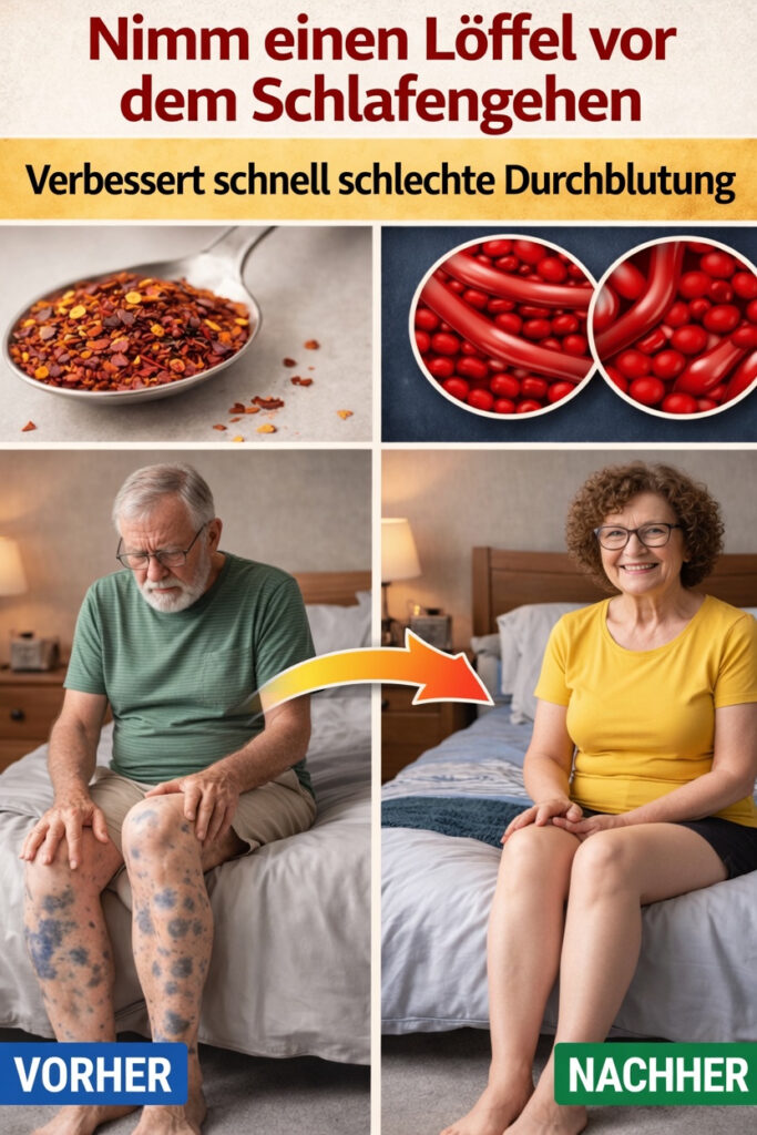 Eine kleine Menge Cayennepfeffer vor dem Schlafengehen kann eine einfache Ergänzung sein, um die Durchblutung in Beinen und Füßen zu unterstützen. In Kombination mit regelmäßiger Bewegung, ausreichender Flüssigkeitszufuhr und einer ausgewogenen Ernährung passt er gut in einen ganzheitlichen Ansatz für mehr Wohlbefinden.