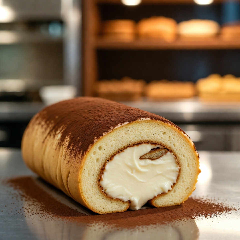 Genießen Sie die intensiven Aromen dieser Tiramisu-Biskuitrolle – eine köstliche Kombination aus luftigem Biskuit, zarter Mascarpone-Creme und einer feinen Kaffeenote. Dieses elegante Dessert passt wunderbar zu festlichen Anlässen, macht sich aber ebenso gut als süße Begleitung zu einer Tasse Kaffee. Eine leichte Schicht Kakaopulver sorgt für den klassischen Tiramisu-Charakter und macht jeden Bissen besonders verführerisch. Die Rolle ist unkompliziert in der Zubereitung, sieht beeindruckend aus und begeistert garantiert Ihre Gäste.