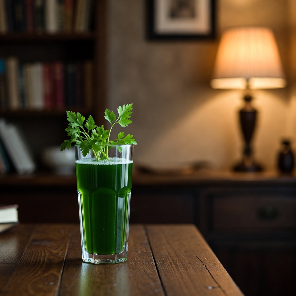 - Trinke den Petersilie-Drink einmal täglich, idealerweise morgens auf nüchternen Magen.