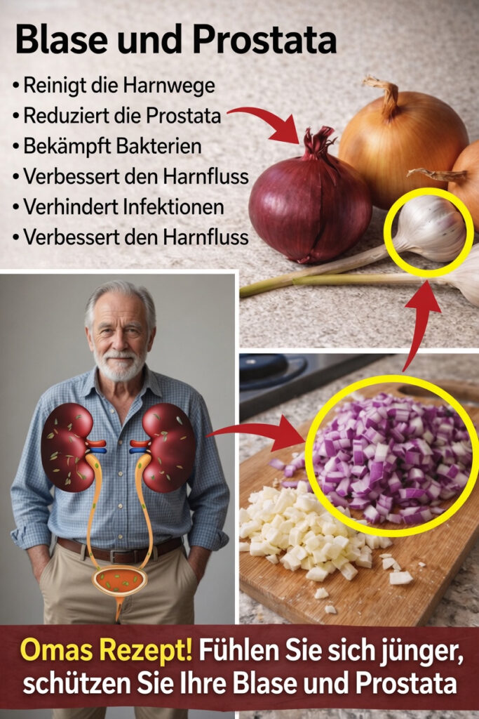 Regelmäßig Zwiebeln und Knoblauch zu essen, ist eine einfache und natürliche Möglichkeit, die Harnwege und die Prostata im Alltag zu unterstützen. Das vorgestellte Hausrezept macht den Einstieg besonders leicht und kann helfen, sich langfristig wohler und ausgeglichener zu fühlen.