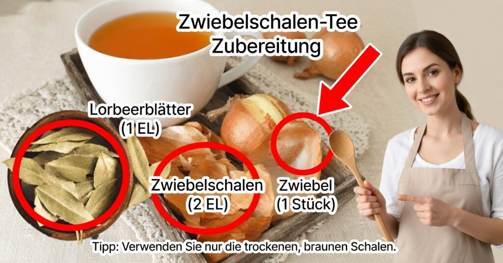 Tee aus Zwiebel und Lorbeer ist ein leicht herzustellendes, kostengünstiges und natürliches Hausmittel, das bei Husten, verschleimten Bronchien und allgemeinen Atemwegsbeschwerden unterstützend wirken kann.